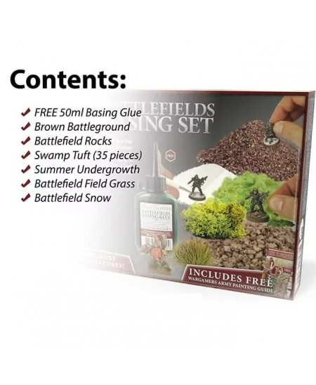 Ce coffret a été conçu pour conférer aux wargamers une boite pour toutes les situations concernant vos socles de figurines. Vous y retrouverez l’ensemble des matériels nécessaires à la réalisation de n’importe quel socle pour vos figurines. Vous y trouverez également une bouteille de 50ml de Basing Glue et un guide technique de Peinture.