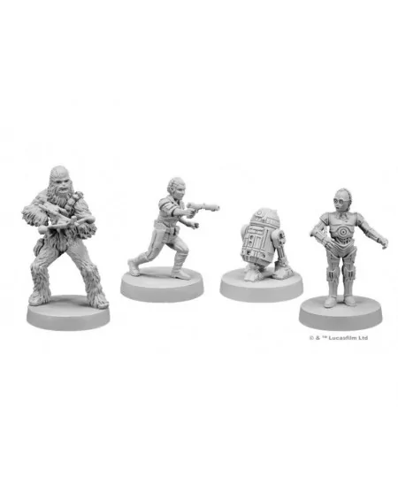 37 figurines en plastique (dont Leia, Chewbacca, C-3PO et R2-D2 !), 15 cartes Unité, 16 cartes Commandement, 33 cartes Amélioration, 2 plaquettes de pions divers, 1 feuillet d’instructions