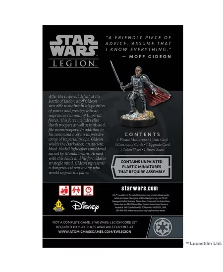 Continuant à servir l’Empire après la bataille d’Endor en tant que chef de son propre reste de forces impériales, Moff Gideon est la pierre angulaire d’une nouvelle force de combat que les joueurs peuvent utiliser dans leurs parties de jeu de figurines Star Wars : Legion.