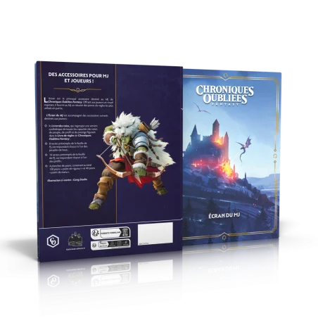 Ce superbe écran rigide, conçu pour les maîtres de jeu, est à la fois pratique et immersif. Il présente, côté joueur, des illustrations captivantes qui plongent immédiatement dans l’univers de Chroniques Oubliées Fantasy, tandis que le côté MJ regroupe les informations clés pour un accès rapide aux règles principales. L’écran inclut aussi un livret spécial des voies, des fiches de personnages préremplies, et des pions de points de vigueur et de mana pour gérer la partie en toute fluidité.