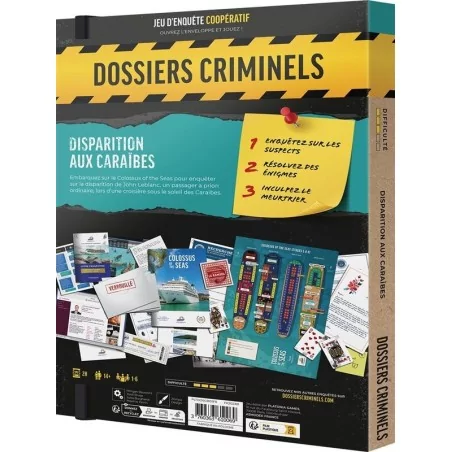 Le Dossier Criminel contient des témoignages, des brochures de la croisière, un plan du bateau , et une multitude d’autres documents pour vous aider dans votre enquête.