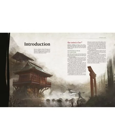 Vous trouverez dans ce livre de 336 pages et tout en couleur, les règles sur les espèces, les historiques, les classes, les dons et tout ce qui vous permet de créer des héros emblématiques de Rokugan.