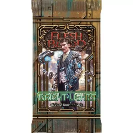 Bienvenue dans la Cité de Metrix, la métropole animée où l’ambition côtoie l’innovation, où l’avenir de Rathe est réinventé quotidiennement dans les centres de recherche de puissants conglomérats. Les héros en herbe sont attirés par les lumières vives de cette grande ville, aveuglés par les slogans des enseignes à néons qui indiquent que vous aussi pouvez « Devenir plus qu’humain ! » Chaque Booster Bright Lights en français contient 16 cartes aléatoires du JCC Flesh and Blood :