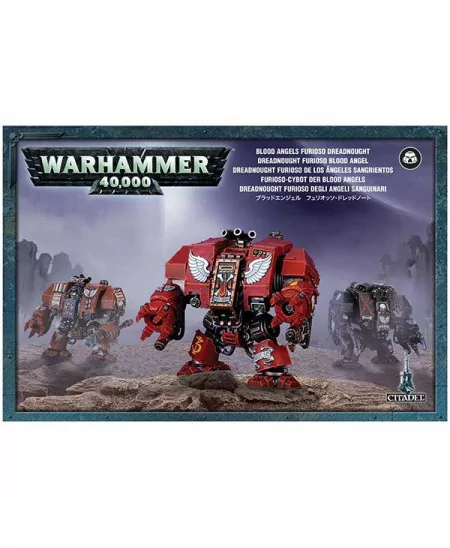 La plupart de ces engins portent les stigmates de millénaires de combats, et sont traités comme des reliques vivantes au sein du Chapitre Blood Angels. Certains Furioso Dreadnought contiennent la dépouille d’un Blood Angels Librarian, et d’autres ont succombé à la Rage Noire et servent dans la Death Company, obnubilés par la destruction et la mort. Ce kit plastique contient 68 pièces, dont trois sarcophages pour monter au choix un Furioso Dreadnought, un Librarian Dreadnought ou un Death Company Dreadnought. Il comprend aussi l’ensemble des options d’armes disponibles pour ces imposantes machines de guerre: gantelets énergétiques, griffes de sang, canon frag, magna-grappin et arme de force pour le Librarian Dreadnought.