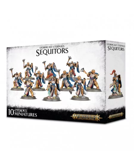 Cette boite contient l’ensemble des composants nécessaires à l’assemblage de 10 figurines de Sequitors des Stormcast Eternals pour Age Of Sigmar. Ces figurines sont en plastique dur et à l’échelle 28mm. Des socles ronds de 40mm Citadel sont également inclus.