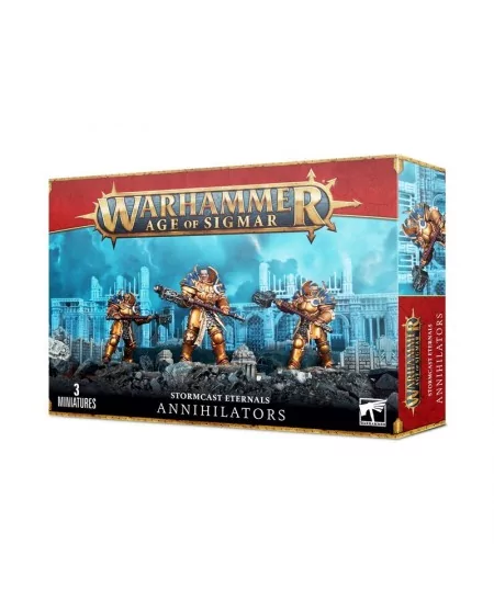 Vous trouverez dans cette boite, 56 pièces, avec lesquelles vous pouvez assembler trois Annihilators maniant des marteaux météoriques et des boucliers.