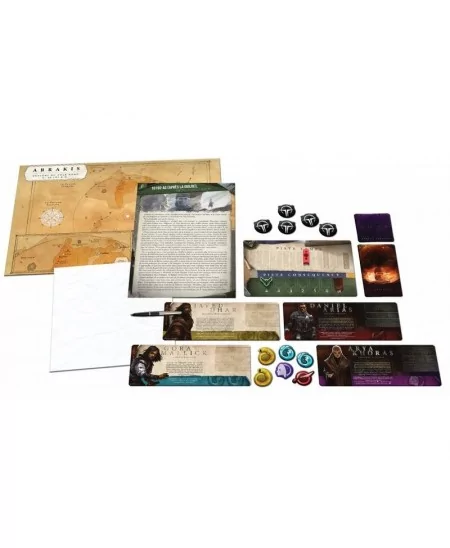 27 jetons Ressource (6 Arme, 6 Épices, 6 Eau, 6 Subterfuge, 3 Joker)