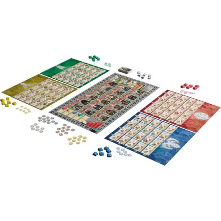 Dans Kingsburg, jeu de stratégie pour 2 à 5 joueurs, utilisez vos dés pour influencer les conseillers du roi, collecter des ressources, construire des bâtiments et recruter des soldats. Affrontez de redoutables invasions et rivalisez avec les autres gouverneurs pour défendre le royaume du roi Tritus.
