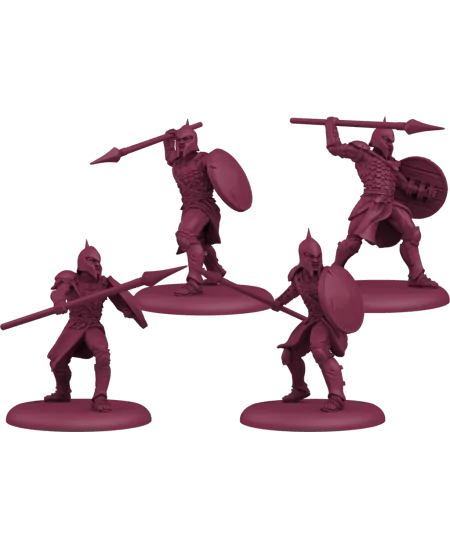 Bien que considérée comme une unité légère par les standards de Westeros, les piquiers combattent en rangs serrés selon d’anciennes doctrines de bataille. Une phalange d’immaculés qui se tient lances baissées et boucliers en avant est une formation quasiment inébranlable face à une charge de cavalerie et même les unités d’infanterie rencontrent les plus grandes difficultés à traverser le mur de lances. S’il est difficile de prendre par surprise une telle unité, un commandant aguerri devra veiller à ce qu’elle ne se fasse pas encercler, ses flancs étant hautement vulnérables.
