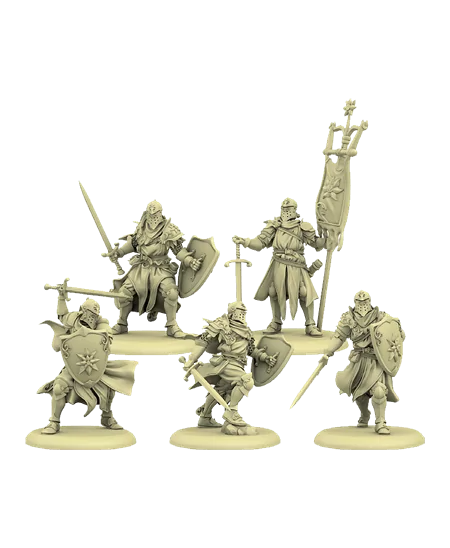 Leur armure peut sembler décorative, mais soyez assuré que l’armure de plates des Rose Knights est forgée dans l’acier le plus solide. Ces troupes d’élite au service du roi Renly peuvent résister aux coups les plus durs que l’ennemi puisse offrir et rendre les dégâts deux fois plus importants. Leur dévouement indéfectible envers leur roi les maintient dans le combat même en cas de blessures graves. Cela dit, le centre d’une formation est l’endroit approprié pour les Chevaliers roses, et un commandant doit éviter de les laisser être flanqués ou encerclés. Mais, correctement soutenue, leur avance portera une force de Baratheon à la victoire sur tous les autres prétendants rois.