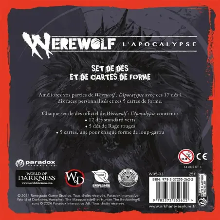 Set de dés officiel – Jeu de rôle Werewolf : l’Apocalypse